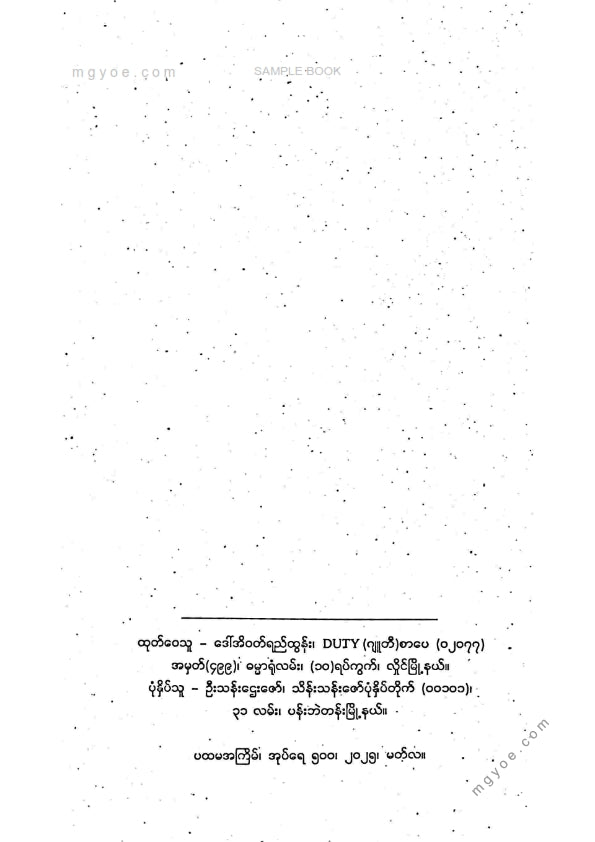 :: ဤစာအုပ်ကို စာမြည်းဖတ်လိုပါက “စာမြည်းရန်အီးဘွခ်” ဆိုသည်ကိုရွေး၍ (Buy it now) ခလုတ် ကိုနှိပ်ကာ၀ယ်ယူပေးပါ၊ အခမဲ့ အမှာစာ (Order) တင်ပြီးသည့်နောက်တွင် ၄င်းအီးဘွခ်ပီဒီအက်ဖ်ဖိုင် ဒေါင်းလုပ်ဆွဲရန်လင့်ကို စာဖတ်သူ၏ အီးမေလ်ထဲသို့ ပို့လိုက်မည်ဖြစ်ပါသည်၊