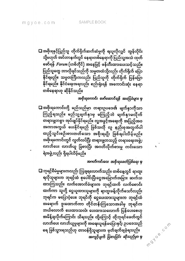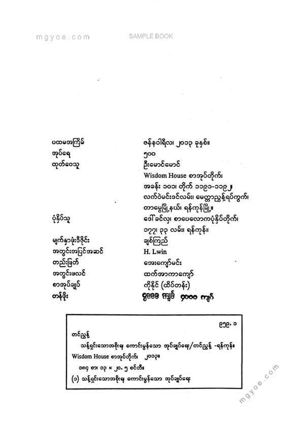 :: ဤစာအုပ်ကို စာမြည်းဖတ်လိုပါက “စာမြည်းရန်အီးဘွခ်” ဆိုသည်ကိုရွေး၍ (Buy it now) ခလုတ် ကိုနှိပ်ကာ၀ယ်ယူပေးပါ၊ အခမဲ့ အမှာစာ (Order) တင်ပြီးသည့်နောက်တွင် ၄င်းအီးဘွခ်ပီဒီအက်ဖ်ဖိုင် ဒေါင်းလုပ်ဆွဲရန်လင့်ကို စာဖတ်သူ၏ အီးမေလ်ထဲသို့ ပို့လိုက်မည်ဖြစ်ပါသည်၊