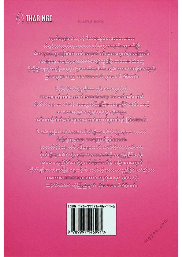 :: ဤစာအုပ်ကို စာမြည်းဖတ်လိုပါက “စာမြည်းရန်အီးဘွခ်” ဆိုသည်ကိုရွေး၍ (Buy it now) ခလုတ် ကိုနှိပ်ကာ၀ယ်ယူပေးပါ၊ အခမဲ့ အမှာစာ (Order) တင်ပြီးသည့်နောက်တွင် ၄င်းအီးဘွခ်ပီဒီအက်ဖ်ဖိုင် ဒေါင်းလုပ်ဆွဲရန်လင့်ကို စာဖတ်သူ၏ အီးမေလ်ထဲသို့ ပို့လိုက်မည်ဖြစ်ပါသည်၊