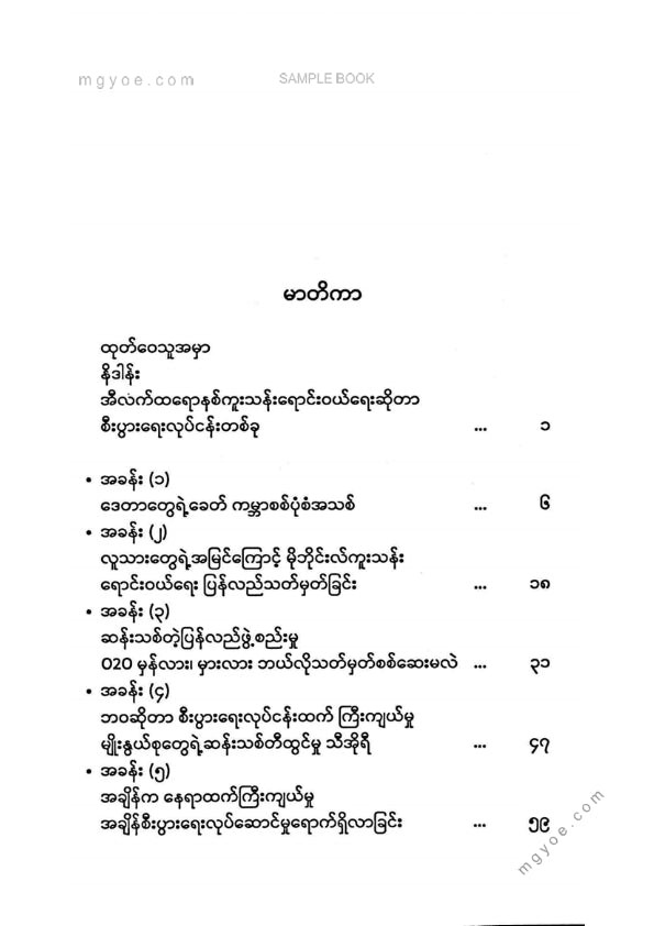 :: ဤစာအုပ်ကို စာမြည်းဖတ်လိုပါက “စာမြည်းရန်အီးဘွခ်” ဆိုသည်ကိုရွေး၍ (Buy it now) ခလုတ် ကိုနှိပ်ကာ၀ယ်ယူပေးပါ၊ အခမဲ့ အမှာစာ (Order) တင်ပြီးသည့်နောက်တွင် ၄င်းအီးဘွခ်ပီဒီအက်ဖ်ဖိုင် ဒေါင်းလုပ်ဆွဲရန်လင့်ကို စာဖတ်သူ၏ အီးမေလ်ထဲသို့ ပို့လိုက်မည်ဖြစ်ပါသည်၊