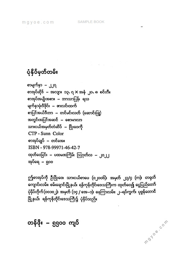 :: ဤစာအုပ်ကို စာမြည်းဖတ်လိုပါက “စာမြည်းရန်အီးဘွခ်” ဆိုသည်ကိုရွေး၍ (Buy it now) ခလုတ် ကိုနှိပ်ကာ၀ယ်ယူပေးပါ၊ အခမဲ့ အမှာစာ (Order) တင်ပြီးသည့်နောက်တွင် ၄င်းအီးဘွခ်ပီဒီအက်ဖ်ဖိုင် ဒေါင်းလုပ်ဆွဲရန်လင့်ကို စာဖတ်သူ၏ အီးမေလ်ထဲသို့ ပို့လိုက်မည်ဖြစ်ပါသည်၊