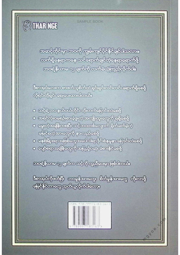 :: ဤစာအုပ်ကို စာမြည်းဖတ်လိုပါက “စာမြည်းရန်အီးဘွခ်” ဆိုသည်ကိုရွေး၍ (Buy it now) ခလုတ် ကိုနှိပ်ကာ၀ယ်ယူပေးပါ၊ အခမဲ့ အမှာစာ (Order) တင်ပြီးသည့်နောက်တွင် ၄င်းအီးဘွခ်ပီဒီအက်ဖ်ဖိုင် ဒေါင်းလုပ်ဆွဲရန်လင့်ကို စာဖတ်သူ၏ အီးမေလ်ထဲသို့ ပို့လိုက်မည်ဖြစ်ပါသည်၊