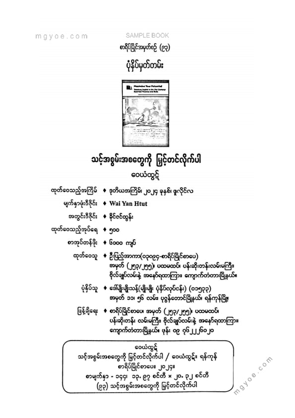 :: ဤစာအုပ်ကို စာမြည်းဖတ်လိုပါက “စာမြည်းရန်အီးဘွခ်” ဆိုသည်ကိုရွေး၍ (Buy it now) ခလုတ် ကိုနှိပ်ကာ၀ယ်ယူပေးပါ၊ အခမဲ့ အမှာစာ (Order) တင်ပြီးသည့်နောက်တွင် ၄င်းအီးဘွခ်ပီဒီအက်ဖ်ဖိုင် ဒေါင်းလုပ်ဆွဲရန်လင့်ကို စာဖတ်သူ၏ အီးမေလ်ထဲသို့ ပို့လိုက်မည်ဖြစ်ပါသည်၊