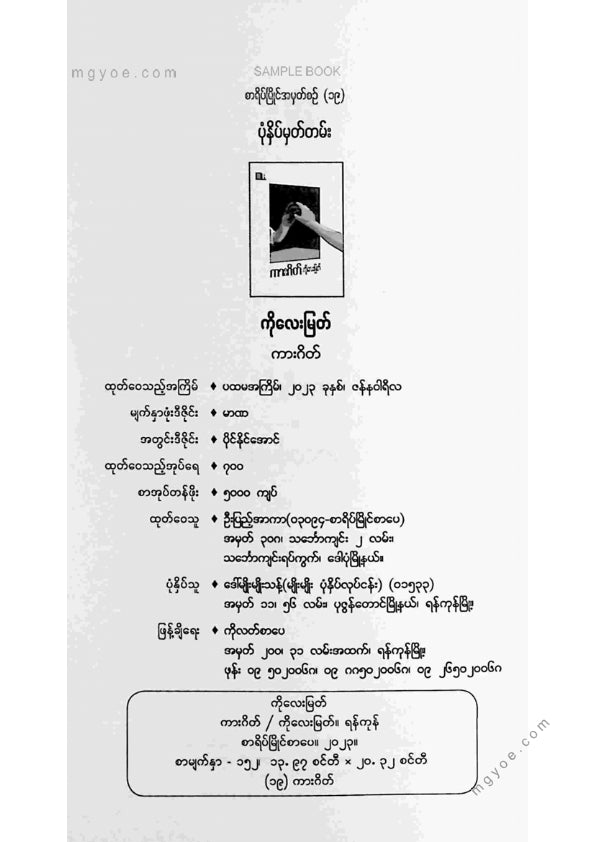 :: ဤစာအုပ်ကို စာမြည်းဖတ်လိုပါက “စာမြည်းရန်အီးဘွခ်” ဆိုသည်ကိုရွေး၍ (Buy it now) ခလုတ် ကိုနှိပ်ကာ၀ယ်ယူပေးပါ၊ အခမဲ့ အမှာစာ (Order) တင်ပြီးသည့်နောက်တွင် ၄င်းအီးဘွခ်ပီဒီအက်ဖ်ဖိုင် ဒေါင်းလုပ်ဆွဲရန်လင့်ကို စာဖတ်သူ၏ အီးမေလ်ထဲသို့ ပို့လိုက်မည်ဖြစ်ပါသည်၊