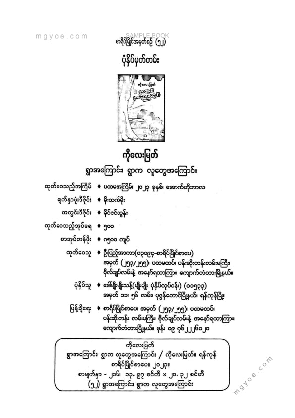 :: ဤစာအုပ်ကို စာမြည်းဖတ်လိုပါက “စာမြည်းရန်အီးဘွခ်” ဆိုသည်ကိုရွေး၍ (Buy it now) ခလုတ် ကိုနှိပ်ကာ၀ယ်ယူပေးပါ၊ အခမဲ့ အမှာစာ (Order) တင်ပြီးသည့်နောက်တွင် ၄င်းအီးဘွခ်ပီဒီအက်ဖ်ဖိုင် ဒေါင်းလုပ်ဆွဲရန်လင့်ကို စာဖတ်သူ၏ အီးမေလ်ထဲသို့ ပို့လိုက်မည်ဖြစ်ပါသည်၊