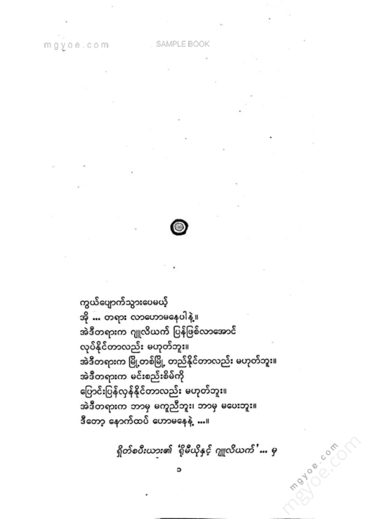 :: ဤစာအုပ်ကို စာမြည်းဖတ်လိုပါက “စာမြည်းရန်အီးဘွခ်” ဆိုသည်ကိုရွေး၍ (Buy it now) ခလုတ် ကိုနှိပ်ကာ၀ယ်ယူပေးပါ၊ အခမဲ့ အမှာစာ (Order) တင်ပြီးသည့်နောက်တွင် ၄င်းအီးဘွခ်ပီဒီအက်ဖ်ဖိုင် ဒေါင်းလုပ်ဆွဲရန်လင့်ကို စာဖတ်သူ၏ အီးမေလ်ထဲသို့ ပို့လိုက်မည်ဖြစ်ပါသည်၊