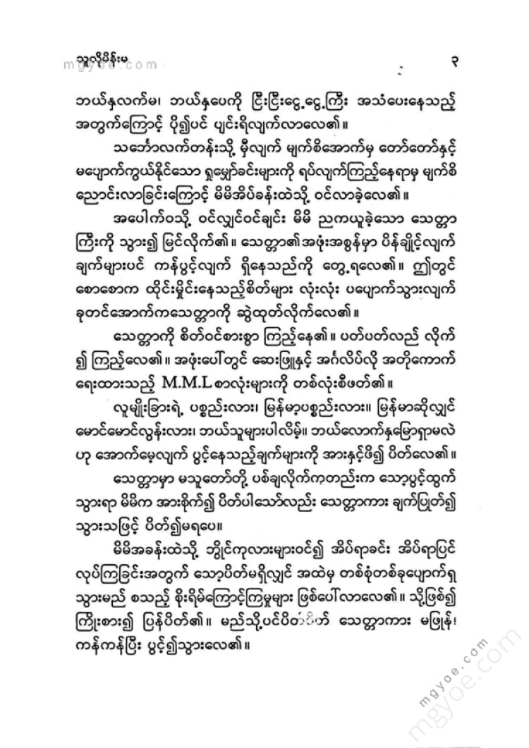 မိမိအလိုကို မိမိဘာသာ သဘောကျရှာကြံ၍ယူရန် ပြောတိုင်း လည်း မိမိတွင် မိန်းမယူရန် အရေးကြီးသည်ဟု တစ်ခါမှ မအောက်မေ့ဖူး ခဲ့သဖြင့် ... .
