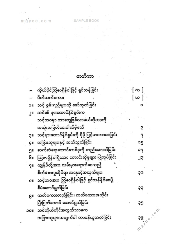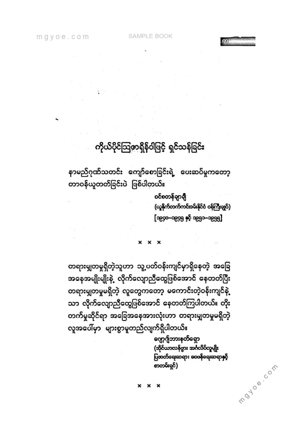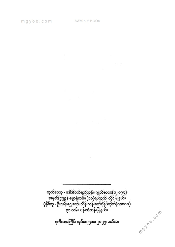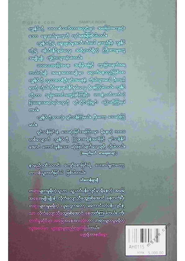:: ဤစာအုပ်ကို စာမြည်းဖတ်လိုပါက “စာမြည်းရန်အီးဘွခ်” ဆိုသည်ကိုရွေး၍ (Buy it now) ခလုတ် ကိုနှိပ်ကာ၀ယ်ယူပေးပါ၊ အခမဲ့ အမှာစာ (Order) တင်ပြီးသည့်နောက်တွင် ၄င်းအီးဘွခ်ပီဒီအက်ဖ်ဖိုင် ဒေါင်းလုပ်ဆွဲရန်လင့်ကို စာဖတ်သူ၏ အီးမေလ်ထဲသို့ ပို့လိုက်မည်ဖြစ်ပါသည်၊