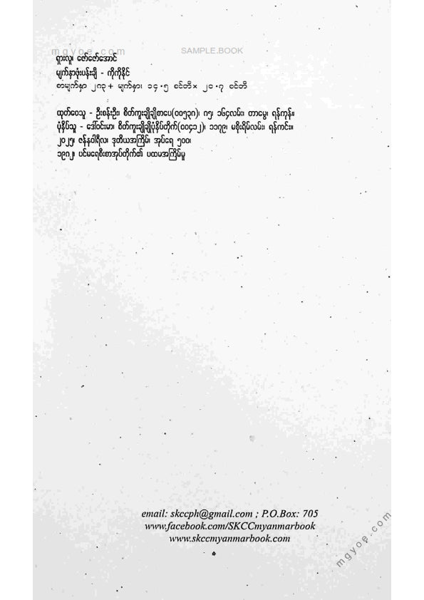 :: ဤစာအုပ်ကို စာမြည်းဖတ်လိုပါက “စာမြည်းရန်အီးဘွခ်” ဆိုသည်ကိုရွေး၍ (Buy it now) ခလုတ် ကိုနှိပ်ကာ၀ယ်ယူပေးပါ၊ အခမဲ့ အမှာစာ (Order) တင်ပြီးသည့်နောက်တွင် ၄င်းအီးဘွခ်ပီဒီအက်ဖ်ဖိုင် ဒေါင်းလုပ်ဆွဲရန်လင့်ကို စာဖတ်သူ၏ အီးမေလ်ထဲသို့ ပို့လိုက်မည်ဖြစ်ပါသည်၊