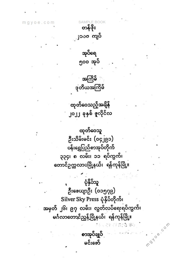:: ဤစာအုပ်ကို စာမြည်းဖတ်လိုပါက “စာမြည်းရန်အီးဘွခ်” ဆိုသည်ကိုရွေး၍ (Buy it now) ခလုတ် ကိုနှိပ်ကာ၀ယ်ယူပေးပါ၊ အခမဲ့ အမှာစာ (Order) တင်ပြီးသည့်နောက်တွင် ၄င်းအီးဘွခ်ပီဒီအက်ဖ်ဖိုင် ဒေါင်းလုပ်ဆွဲရန်လင့်ကို စာဖတ်သူ၏ အီးမေလ်ထဲသို့ ပို့လိုက်မည်ဖြစ်ပါသည်၊