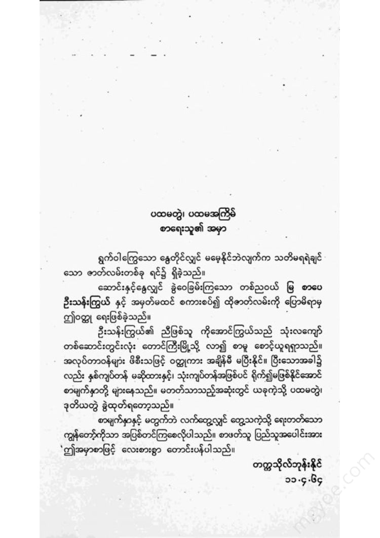 :: ဤစာအုပ်ကို စာမြည်းဖတ်လိုပါက “စာမြည်းရန်အီးဘွခ်” ဆိုသည်ကိုရွေး၍ (Buy it now) ခလုတ် ကိုနှိပ်ကာ၀ယ်ယူပေးပါ၊ အခမဲ့ အမှာစာ (Order) တင်ပြီးသည့်နောက်တွင် ၄င်းအီးဘွခ်ပီဒီအက်ဖ်ဖိုင် ဒေါင်းလုပ်ဆွဲရန်လင့်ကို စာဖတ်သူ၏ အီးမေလ်ထဲသို့ ပို့လိုက်မည်ဖြစ်ပါသည်၊