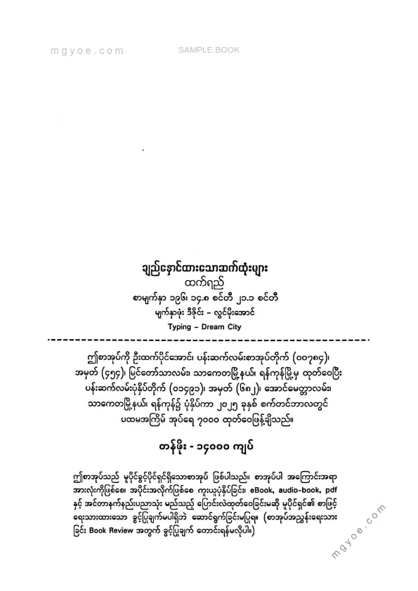 :: ဤစာအုပ်ကို စာမြည်းဖတ်လိုပါက “စာမြည်းရန်အီးဘွခ်” ဆိုသည်ကိုရွေး၍ (Buy it now) ခလုတ် ကိုနှိပ်ကာ၀ယ်ယူပေးပါ၊ အခမဲ့ အမှာစာ (Order) တင်ပြီးသည့်နောက်တွင် ၄င်းအီးဘွခ်ပီဒီအက်ဖ်ဖိုင် ဒေါင်းလုပ်ဆွဲရန်လင့်ကို စာဖတ်သူ၏ အီးမေလ်ထဲသို့ ပို့လိုက်မည်ဖြစ်ပါသည်၊