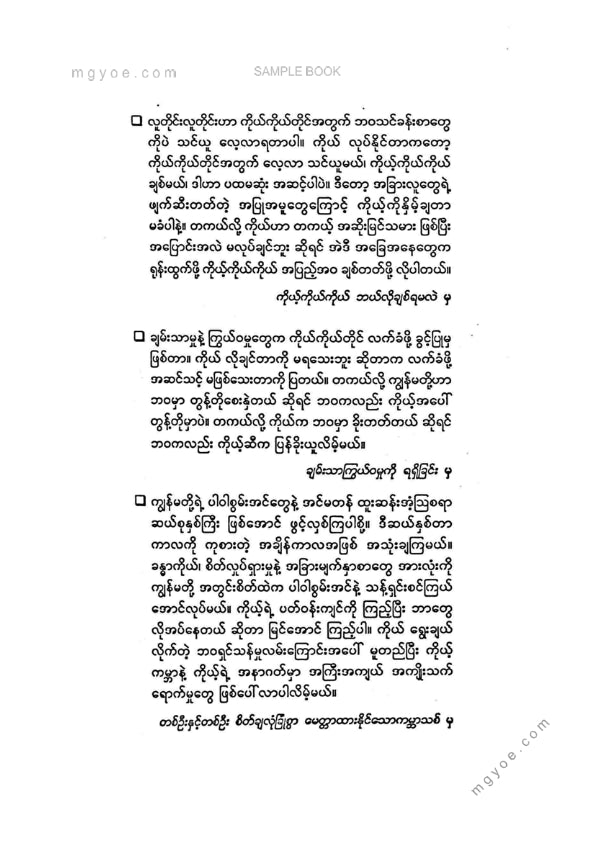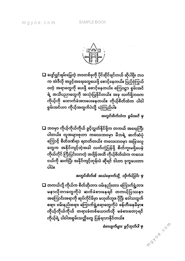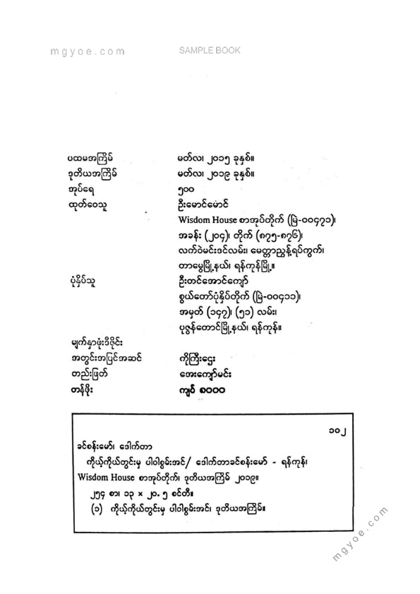 :: ဤစာအုပ်ကို စာမြည်းဖတ်လိုပါက “စာမြည်းရန်အီးဘွခ်” ဆိုသည်ကိုရွေး၍ (Buy it now) ခလုတ် ကိုနှိပ်ကာ၀ယ်ယူပေးပါ၊ အခမဲ့ အမှာစာ (Order) တင်ပြီးသည့်နောက်တွင် ၄င်းအီးဘွခ်ပီဒီအက်ဖ်ဖိုင် ဒေါင်းလုပ်ဆွဲရန်လင့်ကို စာဖတ်သူ၏ အီးမေလ်ထဲသို့ ပို့လိုက်မည်ဖြစ်ပါသည်၊