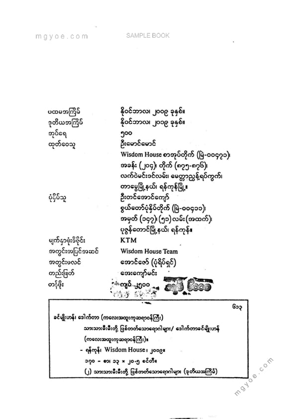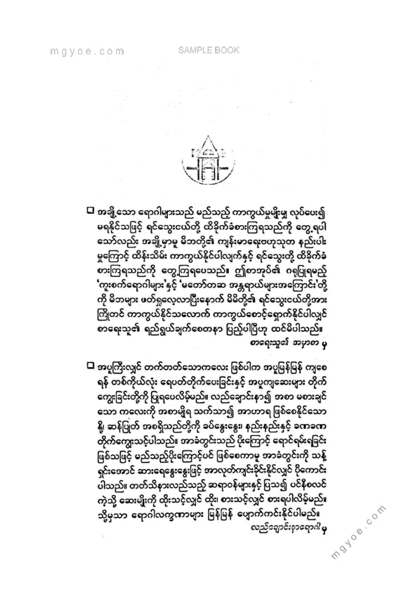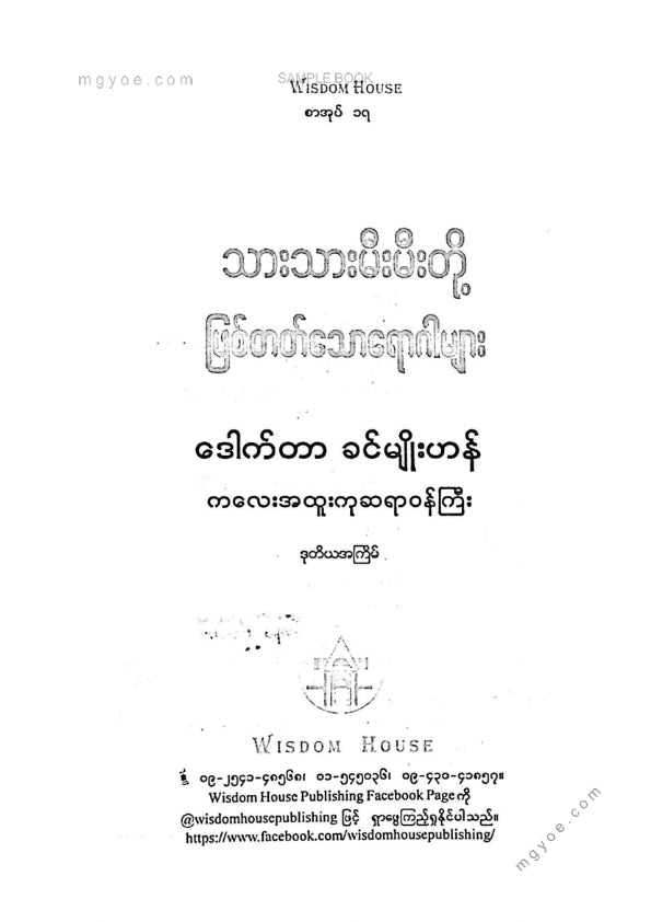 :: ဤစာအုပ်ကို စာမြည်းဖတ်လိုပါက “စာမြည်းရန်အီးဘွခ်” ဆိုသည်ကိုရွေး၍ (Buy it now) ခလုတ် ကိုနှိပ်ကာ၀ယ်ယူပေးပါ၊ အခမဲ့ အမှာစာ (Order) တင်ပြီးသည့်နောက်တွင် ၄င်းအီးဘွခ်ပီဒီအက်ဖ်ဖိုင် ဒေါင်းလုပ်ဆွဲရန်လင့်ကို စာဖတ်သူ၏ အီးမေလ်ထဲသို့ ပို့လိုက်မည်ဖြစ်ပါသည်၊