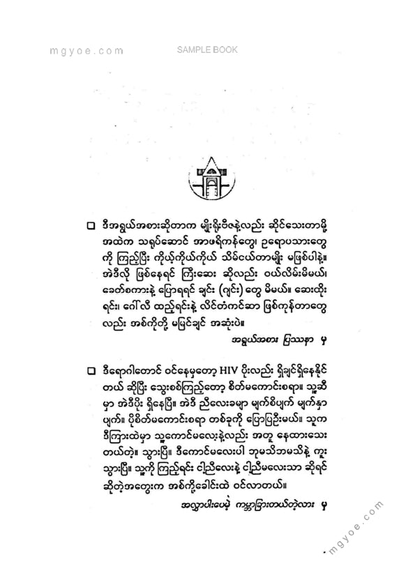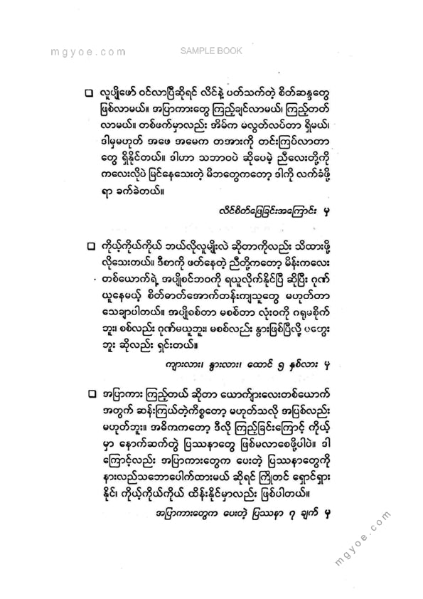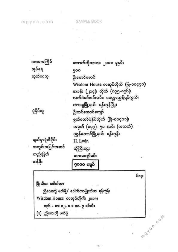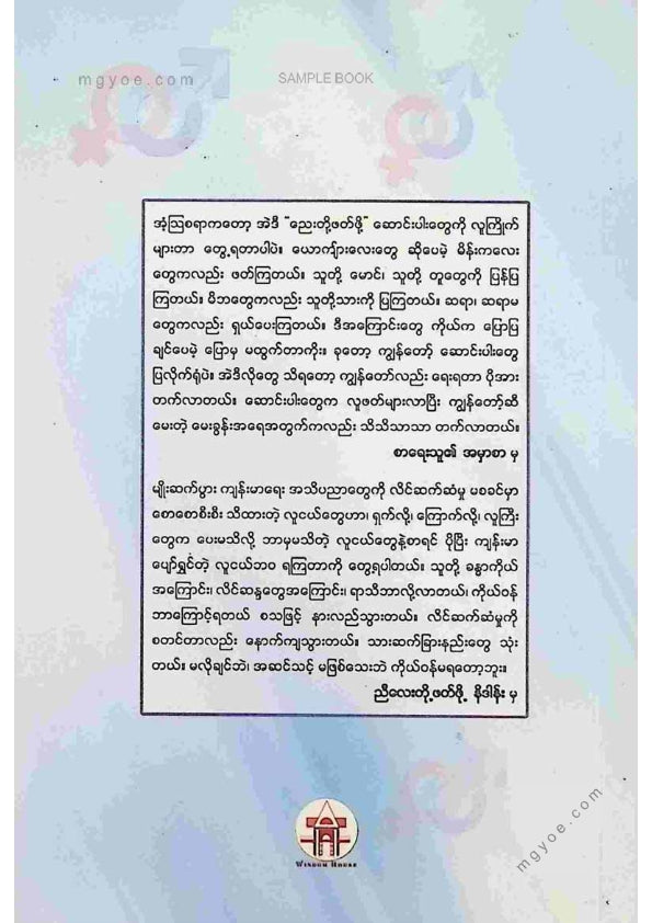 :: ဤစာအုပ်ကို စာမြည်းဖတ်လိုပါက “စာမြည်းရန်အီးဘွခ်” ဆိုသည်ကိုရွေး၍ (Buy it now) ခလုတ် ကိုနှိပ်ကာ၀ယ်ယူပေးပါ၊ အခမဲ့ အမှာစာ (Order) တင်ပြီးသည့်နောက်တွင် ၄င်းအီးဘွခ်ပီဒီအက်ဖ်ဖိုင် ဒေါင်းလုပ်ဆွဲရန်လင့်ကို စာဖတ်သူ၏ အီးမေလ်ထဲသို့ ပို့လိုက်မည်ဖြစ်ပါသည်၊