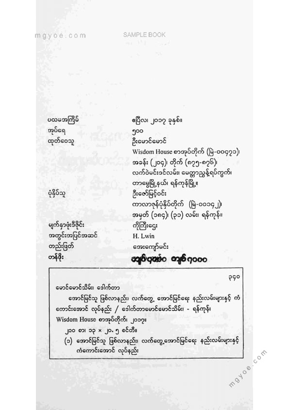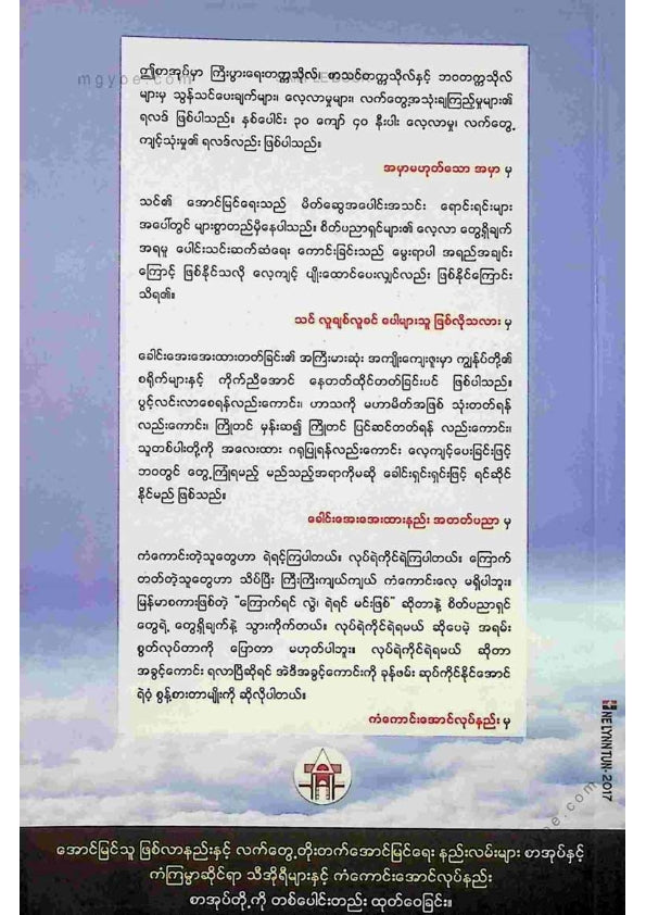 :: ဤစာအုပ်ကို စာမြည်းဖတ်လိုပါက “စာမြည်းရန်အီးဘွခ်” ဆိုသည်ကိုရွေး၍ (Buy it now) ခလုတ် ကိုနှိပ်ကာ၀ယ်ယူပေးပါ၊ အခမဲ့ အမှာစာ (Order) တင်ပြီးသည့်နောက်တွင် ၄င်းအီးဘွခ်ပီဒီအက်ဖ်ဖိုင် ဒေါင်းလုပ်ဆွဲရန်လင့်ကို စာဖတ်သူ၏ အီးမေလ်ထဲသို့ ပို့လိုက်မည်ဖြစ်ပါသည်၊