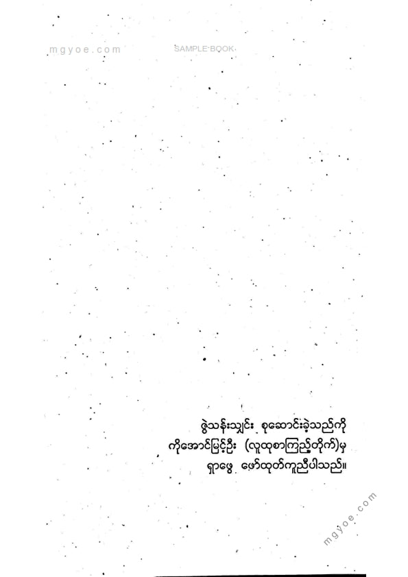 :: ဤစာအုပ်ကို စာမြည်းဖတ်လိုပါက “စာမြည်းရန်အီးဘွခ်” ဆိုသည်ကိုရွေး၍ (Buy it now) ခလုတ် ကိုနှိပ်ကာ၀ယ်ယူပေးပါ၊ အခမဲ့ အမှာစာ (Order) တင်ပြီးသည့်နောက်တွင် ၄င်းအီးဘွခ်ပီဒီအက်ဖ်ဖိုင် ဒေါင်းလုပ်ဆွဲရန်လင့်ကို စာဖတ်သူ၏ အီးမေလ်ထဲသို့ ပို့လိုက်မည်ဖြစ်ပါသည်၊