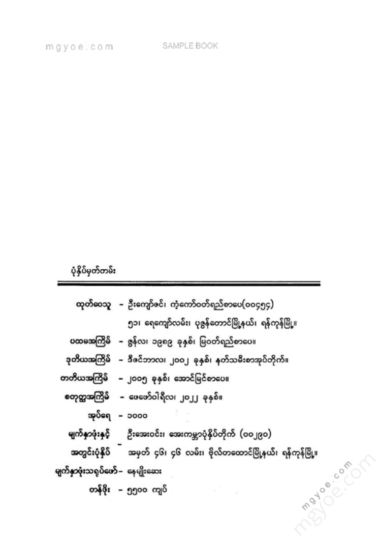 :: ဤစာအုပ်ကို စာမြည်းဖတ်လိုပါက “စာမြည်းရန်အီးဘွခ်” ဆိုသည်ကိုရွေး၍ (Buy it now) ခလုတ် ကိုနှိပ်ကာ၀ယ်ယူပေးပါ၊ အခမဲ့ အမှာစာ (Order) တင်ပြီးသည့်နောက်တွင် ၄င်းအီးဘွခ်ပီဒီအက်ဖ်ဖိုင် ဒေါင်းလုပ်ဆွဲရန်လင့်ကို စာဖတ်သူ၏ အီးမေလ်ထဲသို့ ပို့လိုက်မည်ဖြစ်ပါသည်၊