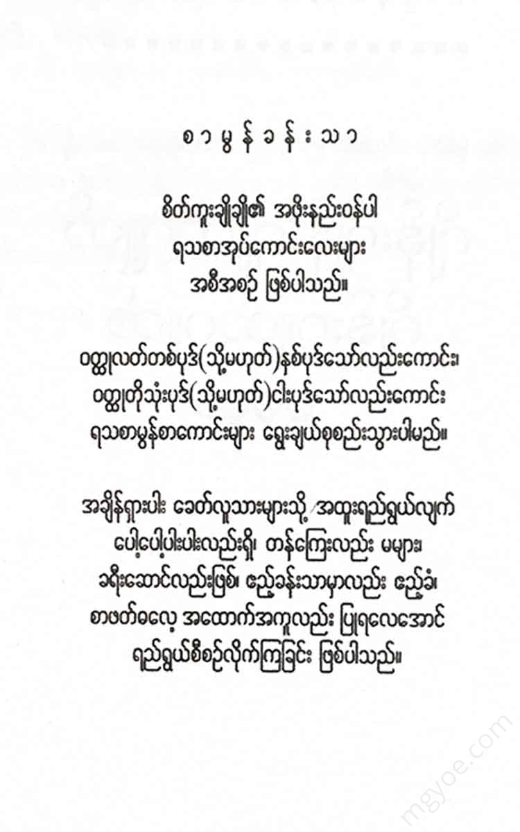 “ခဏ ခဏလုပ်လို့တော့ မဖြစ်ဘူး၊ တော်ကြာ လူသိကုန်ရင် ဒုက္ခ၊ မေမေသာ သိရင်တော့ သေလိမ့်မယ် ထင်တယ်၊ မောင်လေးနဲ့ ညီမလေး သိရင်ရော၊ အို... မတွေးချင်တော့ပါဘူး၊ တစ်နေ့တုန်းကတော့ တည်းခိုခန်း တက်ဖမ်းတာ မိကြတယ်ကြားတယ်၊ ငါ့ကိုများ အဲဒီလို မိသွားရင် ရှက်တာနဲ့ ချက်ချင်းလဲသေလိမ့်မယ် ထင်ပါရဲ့”