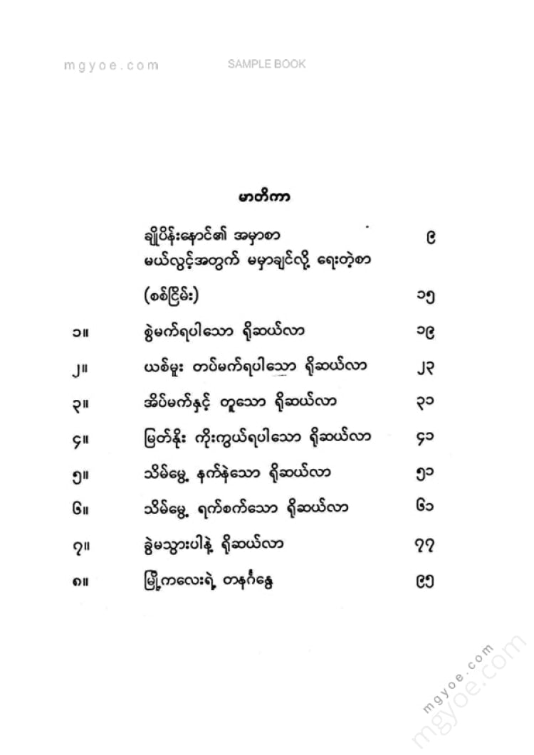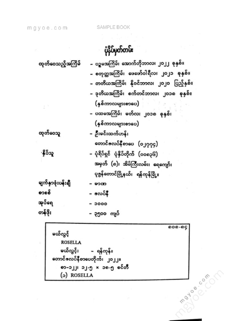 :: ဤစာအုပ်ကို စာမြည်းဖတ်လိုပါက “စာမြည်းရန်အီးဘွခ်” ဆိုသည်ကိုရွေး၍ (Buy it now) ခလုတ် ကိုနှိပ်ကာ၀ယ်ယူပေးပါ၊ အခမဲ့ အမှာစာ (Order) တင်ပြီးသည့်နောက်တွင် ၄င်းအီးဘွခ်ပီဒီအက်ဖ်ဖိုင် ဒေါင်းလုပ်ဆွဲရန်လင့်ကို စာဖတ်သူ၏ အီးမေလ်ထဲသို့ ပို့လိုက်မည်ဖြစ်ပါသည်၊
