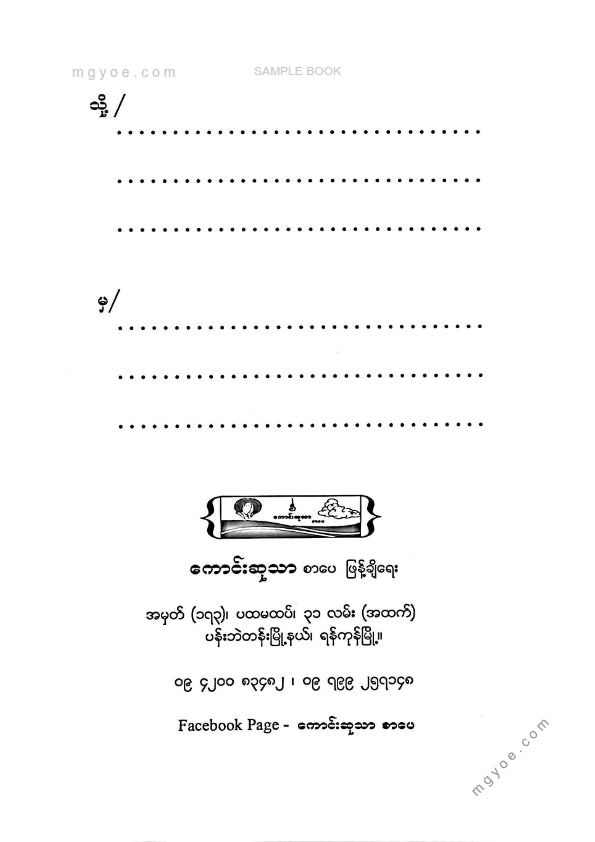 :: ဤစာအုပ်ကို စာမြည်းဖတ်လိုပါက “စာမြည်းရန်အီးဘွခ်” ဆိုသည်ကိုရွေး၍ (Buy it now) ခလုတ် ကိုနှိပ်ကာ၀ယ်ယူပေးပါ၊ အခမဲ့ အမှာစာ (Order) တင်ပြီးသည့်နောက်တွင် ၄င်းအီးဘွခ်ပီဒီအက်ဖ်ဖိုင် ဒေါင်းလုပ်ဆွဲရန်လင့်ကို စာဖတ်သူ၏ အီးမေလ်ထဲသို့ ပို့လိုက်မည်ဖြစ်ပါသည်၊