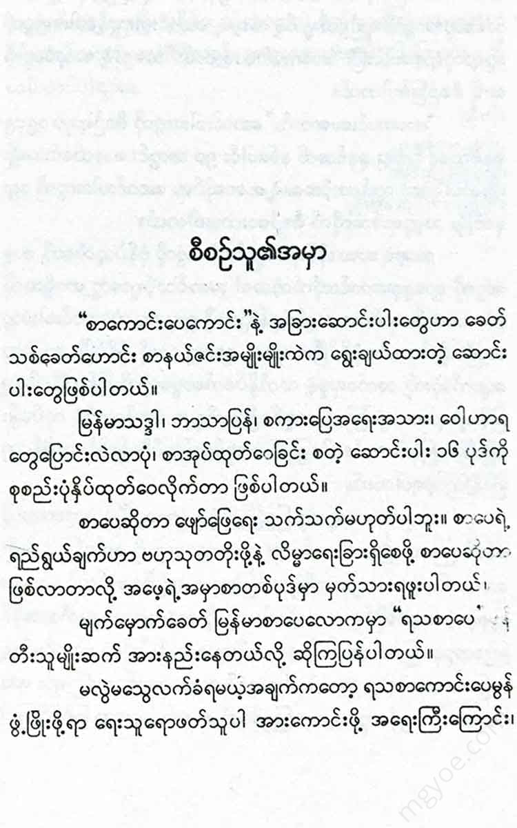 အင်္ဂလိပ်ကျောင်းများ၌ သဒ္ဒါအတွက် သင်ခန်းစာများ တစ်စ တစ်စ နည်းပါးလာသည်ကို အတုယူ၍လော မသိ။ ယခုကာလ မြန်မာ စာသင်ကျောင်းများတွင် သဒ္ဒါနည်းကို သင်ပေးခြင်းမှာ မရှိသလောက် ပေ။ အလွန်လျှင် ရှေးသမားရိုးကျ ကျောင်းများ၌သာ သင်ကြားပေး သည်။ ထို့ကြောင့် ယခုကာလပေါ် (ဘုန်းကြီးကျောင်းများ၊ မြန်မာကျောင်း များ၌ စာမသင်ဘူးသူ) စာရေးဆရာဆိုသူတို့သည် မြန်မာစာအရေး အသား၌ ဝါကျအထားအသို မမှန်၊ သဒ္ဒါနည်းမကျ၊ အဓိပ္ပာယ်မကိုက်၊ အမှားမှား အယွင်းယွင်း ရေးသားတတ်ကြသည်။ ထို့အတွက် ၎င်းတို့ အား အပြစ်မတင်သာချေ။ ဤစာရေးသူပင်လျှင် မနှစ်က ကိုယ်ရေးသော စာကို သည်နှစ်ပြန်ဖတ်ကြည့်သောအခါ မည်မျှပင် ဂရုတစိုက်ရေးခဲ့ သည်ဖြစ်စေကာမူ သဒ္ဒါအမှားများစွာပါသည်ကို ဝမ်းနည်းပက်လက် တွေ့မိသည်။ စာလုံးပေါင်းမှားသည်ကိုမူ ကျွန်တော်ထည့်၍ မပြောလို တော့ပြီ။ အမှန်ပြောရလျှင် မြန်မာစာသင်ကျောင်း၌ နေခဲ့စဉ်က စာလုံးပေါင်းတစ်ချက်မှားလျှင် တစ်ချက်အရိုက်ခံရ၍လား မပြောတတ်။ သတ် ပုံအရာ၌ အထက်တန်းကျခဲ့ပါ၏။ အင်္ဂလိပ်ကျောင်းရောက်သည့်နေ့က စပြီး သတ်ပုံအမှားမှားတို့ကို ကောင်းစွာရေးတတ်ခဲ့လေသည်။