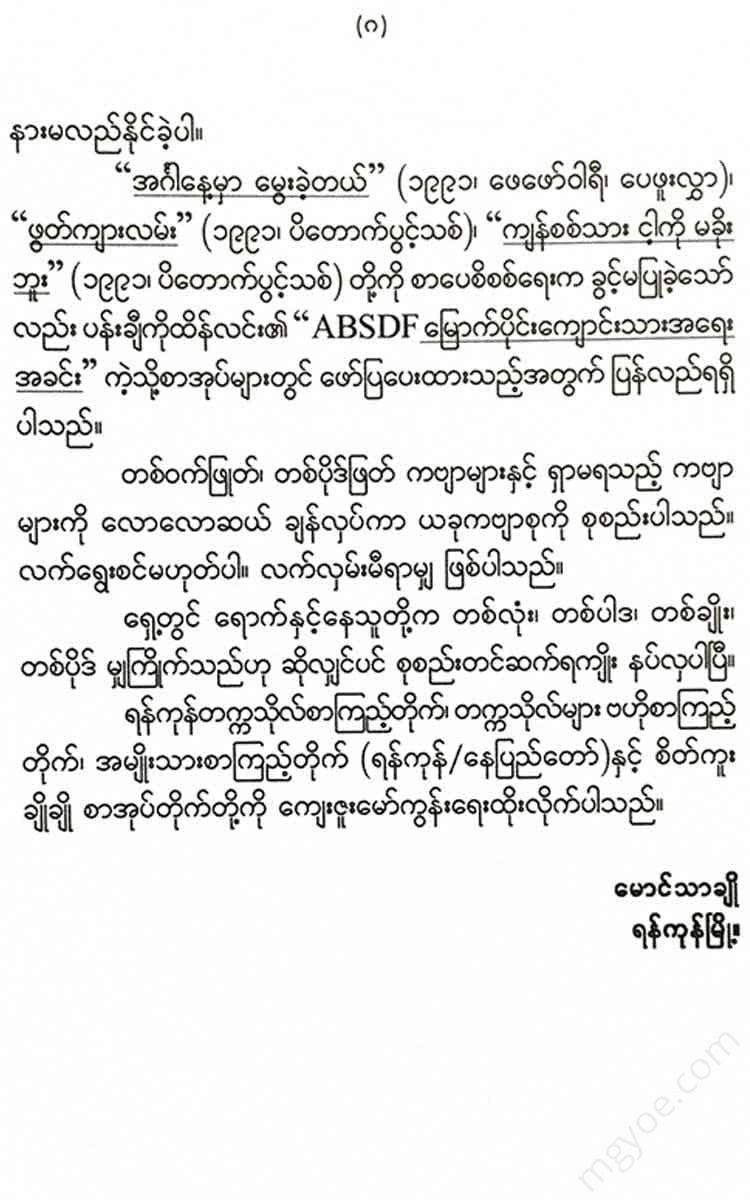 ယခု စာအုပ်အတွက် ကဗျာများကို စုစည်းရသည်မှာ နည်းနည်း ကလေးခက်ပါသည်။ ။