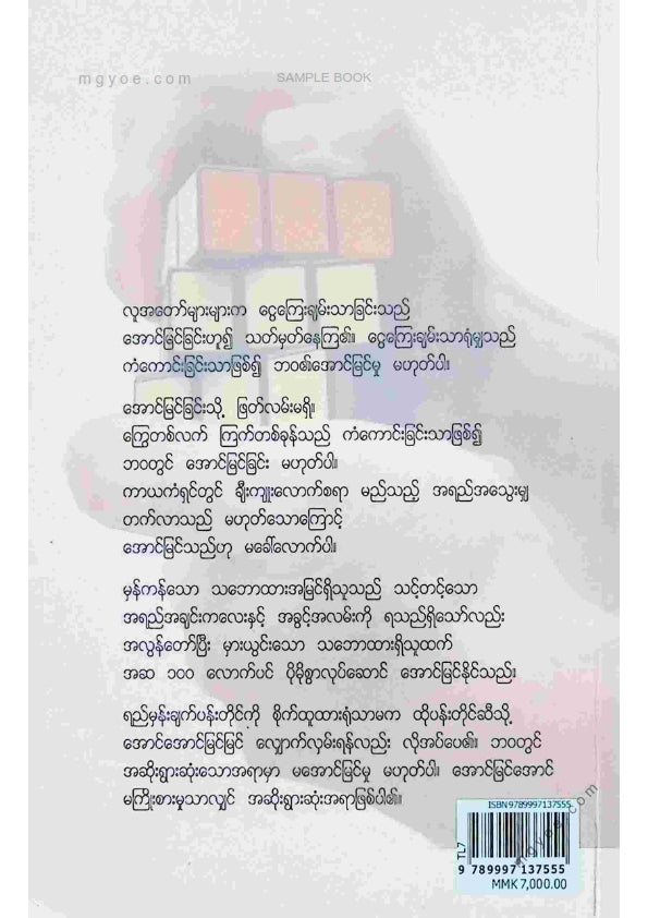 :: ဤစာအုပ်ကို စာမြည်းဖတ်လိုပါက “စာမြည်းရန်အီးဘွခ်” ဆိုသည်ကိုရွေး၍ (Buy it now) ခလုတ် ကိုနှိပ်ကာ၀ယ်ယူပေးပါ၊ အခမဲ့ အမှာစာ (Order) တင်ပြီးသည့်နောက်တွင် ၄င်းအီးဘွခ်ပီဒီအက်ဖ်ဖိုင် ဒေါင်းလုပ်ဆွဲရန်လင့်ကို စာဖတ်သူ၏ အီးမေလ်ထဲသို့ ပို့လိုက်မည်ဖြစ်ပါသည်၊