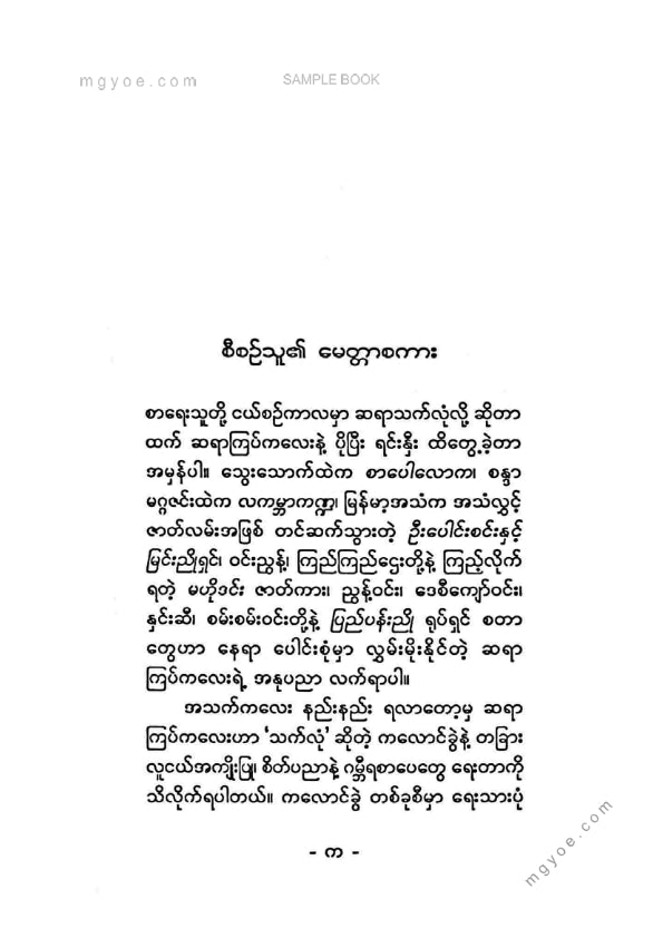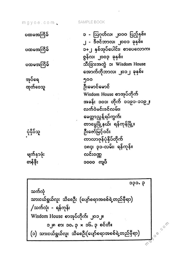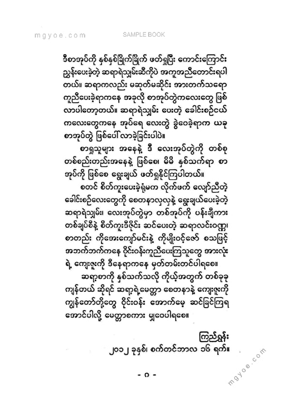 :: ဤစာအုပ်ကို စာမြည်းဖတ်လိုပါက “စာမြည်းရန်အီးဘွခ်” ဆိုသည်ကိုရွေး၍ (Buy it now) ခလုတ် ကိုနှိပ်ကာ၀ယ်ယူပေးပါ၊ အခမဲ့ အမှာစာ (Order) တင်ပြီးသည့်နောက်တွင် ၄င်းအီးဘွခ်ပီဒီအက်ဖ်ဖိုင် ဒေါင်းလုပ်ဆွဲရန်လင့်ကို စာဖတ်သူ၏ အီးမေလ်ထဲသို့ ပို့လိုက်မည်ဖြစ်ပါသည်၊