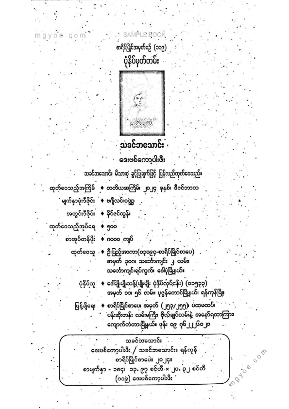 :: ဤစာအုပ်ကို စာမြည်းဖတ်လိုပါက “စာမြည်းရန်အီးဘွခ်” ဆိုသည်ကိုရွေး၍ (Buy it now) ခလုတ် ကိုနှိပ်ကာ၀ယ်ယူပေးပါ၊ အခမဲ့ အမှာစာ (Order) တင်ပြီးသည့်နောက်တွင် ၄င်းအီးဘွခ်ပီဒီအက်ဖ်ဖိုင် ဒေါင်းလုပ်ဆွဲရန်လင့်ကို စာဖတ်သူ၏ အီးမေလ်ထဲသို့ ပို့လိုက်မည်ဖြစ်ပါသည်၊
