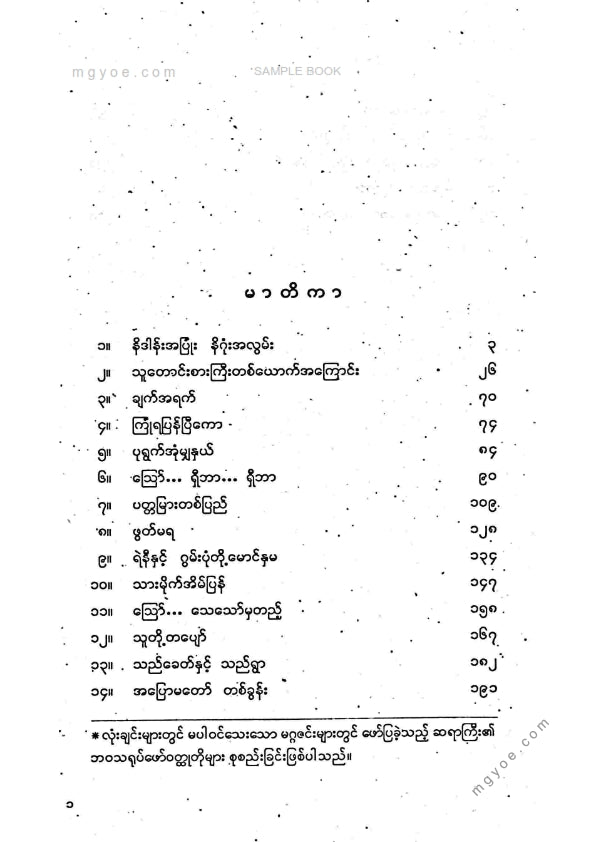 :: ဤစာအုပ်ကို စာမြည်းဖတ်လိုပါက “စာမြည်းရန်အီးဘွခ်” ဆိုသည်ကိုရွေး၍ (Buy it now) ခလုတ် ကိုနှိပ်ကာ၀ယ်ယူပေးပါ၊ အခမဲ့ အမှာစာ (Order) တင်ပြီးသည့်နောက်တွင် ၄င်းအီးဘွခ်ပီဒီအက်ဖ်ဖိုင် ဒေါင်းလုပ်ဆွဲရန်လင့်ကို စာဖတ်သူ၏ အီးမေလ်ထဲသို့ ပို့လိုက်မည်ဖြစ်ပါသည်၊