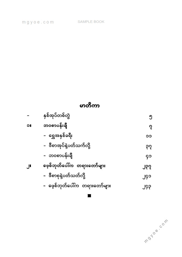 :: ဤစာအုပ်ကို စာမြည်းဖတ်လိုပါက “စာမြည်းရန်အီးဘွခ်” ဆိုသည်ကိုရွေး၍ (Buy it now) ခလုတ် ကိုနှိပ်ကာ၀ယ်ယူပေးပါ၊ အခမဲ့ အမှာစာ (Order) တင်ပြီးသည့်နောက်တွင် ၄င်းအီးဘွခ်ပီဒီအက်ဖ်ဖိုင် ဒေါင်းလုပ်ဆွဲရန်လင့်ကို စာဖတ်သူ၏ အီးမေလ်ထဲသို့ ပို့လိုက်မည်ဖြစ်ပါသည်၊