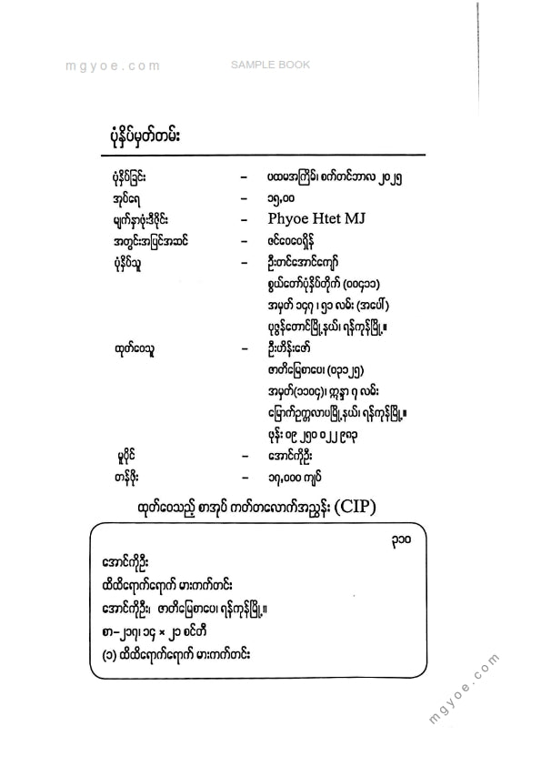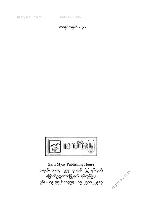 :: ဤစာအုပ်ကို စာမြည်းဖတ်လိုပါက “စာမြည်းရန်အီးဘွခ်” ဆိုသည်ကိုရွေး၍ (Buy it now) ခလုတ် ကိုနှိပ်ကာ၀ယ်ယူပေးပါ၊ အခမဲ့ အမှာစာ (Order) တင်ပြီးသည့်နောက်တွင် ၄င်းအီးဘွခ်ပီဒီအက်ဖ်ဖိုင် ဒေါင်းလုပ်ဆွဲရန်လင့်ကို စာဖတ်သူ၏ အီးမေလ်ထဲသို့ ပို့လိုက်မည်ဖြစ်ပါသည်၊
